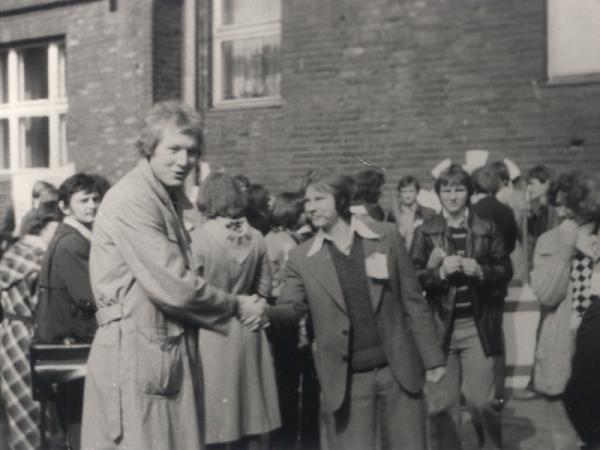 Zdjęcie z pochodu 1-majowego 1978 r. Na pierwszym planie Włodek Nocek ( Długi) oraz Marek Mikulewicz ( Wafel).2007-04-24 09:27:29, Stary Kot