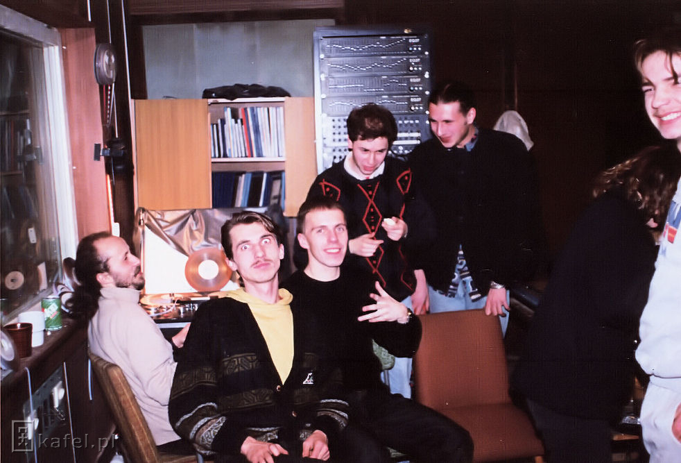 | Opis: | sesja nagraniowa zespołu Kafel (Darek Krzywański, Andrzej Kwinto) w studiu nagraniowym ARP (zdjęcie dzięki uprzejmości D. Krzywańskiego) |
